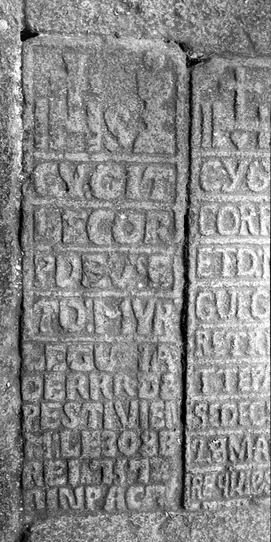 Pierre tombale au niveau des fenêtres est de la nefImmatriculation