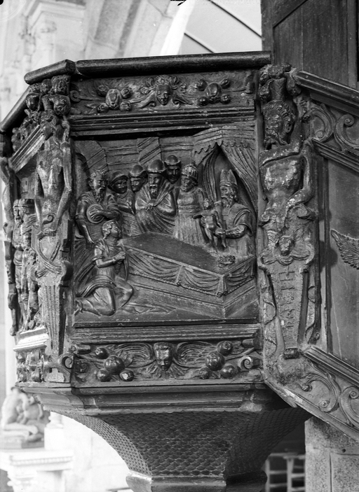 Chaire à prêcher, détail : pan est de la cuve (Présentation au temple)Immatriculation