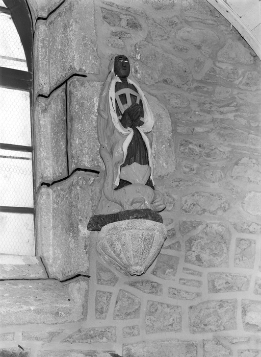 Statue (demi-nature, d'applique) : sainte Marguerite issant du dragon, chapelle Saint Fiacre (Plusquellec),