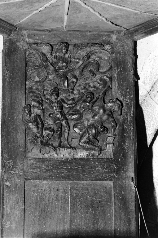 Dorsal de la chaire à prêcher, détail : panneau de l'Annonce aux BergersImmatriculation