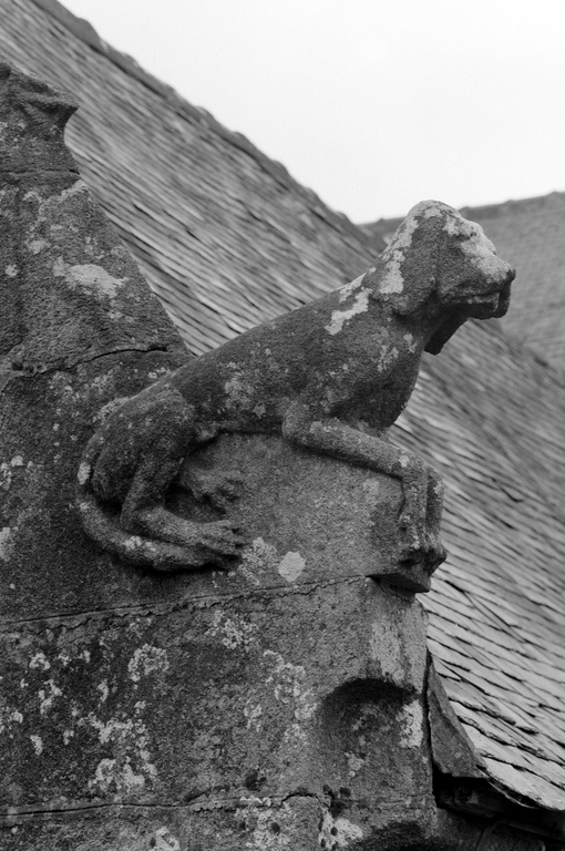 Pignon du porche nord, détail : pierre d'assise ouest du rampantImmatriculation
