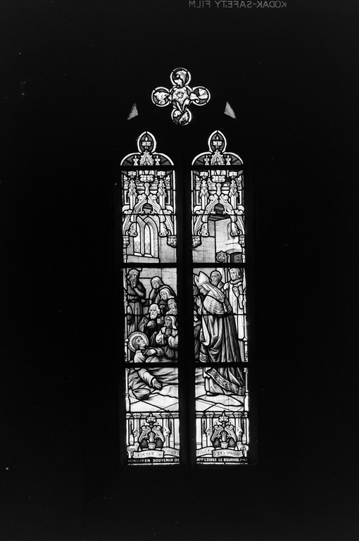 Bas-côté nord, seconde vitre est : l'évêque de Tréguier visite Saint-Yves mourantImmatriculation