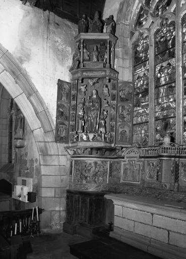 Maître-autel et ses statues : La Vierge ; La Trinité, chapelle du Notre-Dame-du-Crann (Spézet),