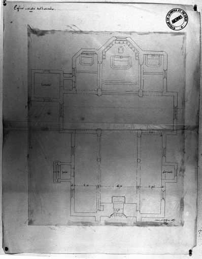 Châteaulin, église paroissiale Saint-Idunet : Plan au sol, Jospeh Bigot, 1867 (A.E. Quimper).Immatriculation