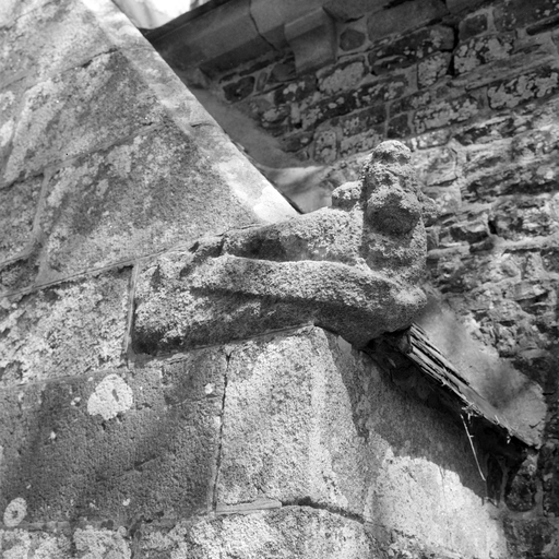 Façade ouest, détail crossette du rampant sudImmatriculation
