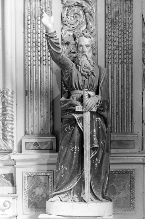 Statue saint Paul, à droite de l'autel, vue générale.Immatriculation