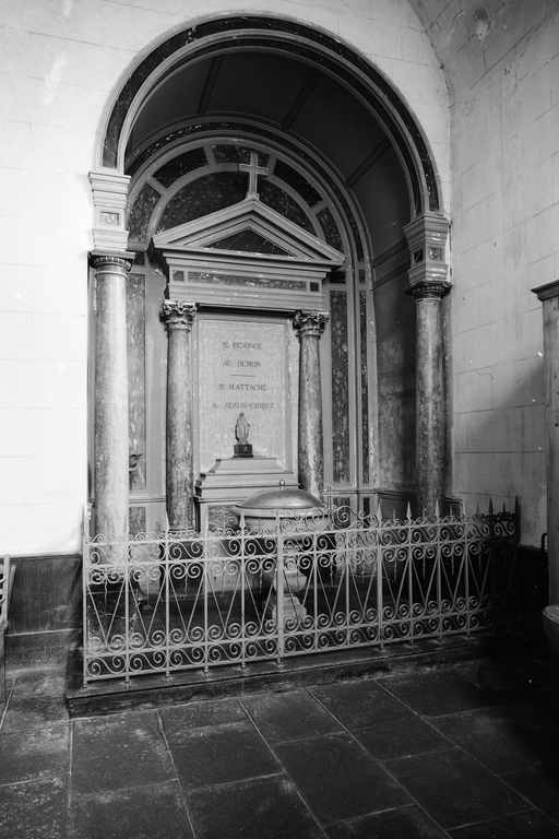 Bas-côté nord, baptistère, vue générale.Immatriculation