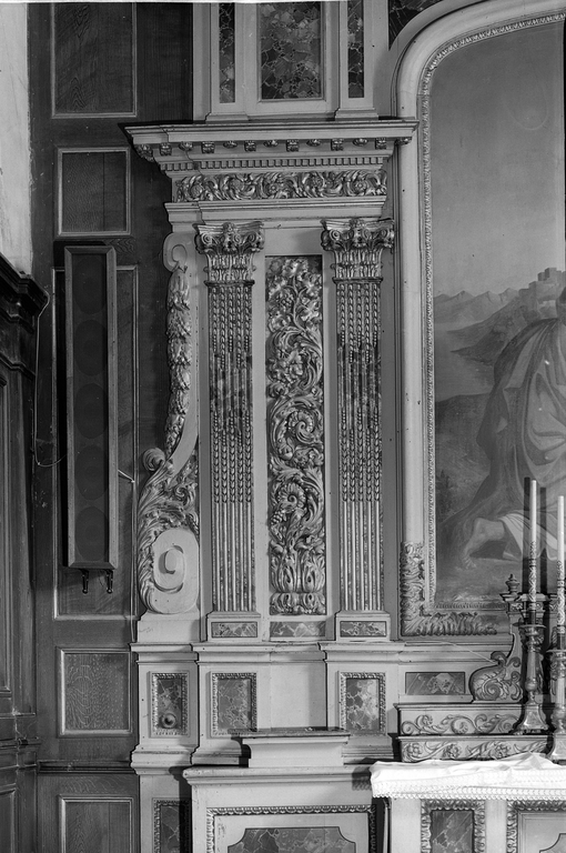 Retable du bas-côté sud, détail d'une partie latérale, 2 pilastres et décor végétal intermédiaire.Immatriculation