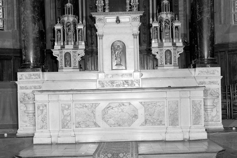 Autel, tabernacle, exposition, baldaquin (maître-autel), église paroissiale Saint-Martin (Guichen),
