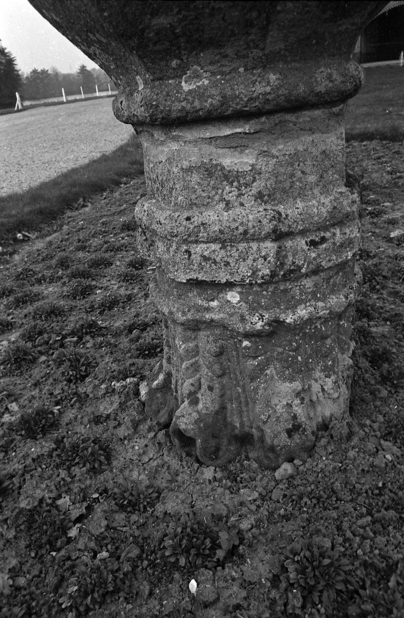 Bénitier, vue de détail du pied.Immatriculation