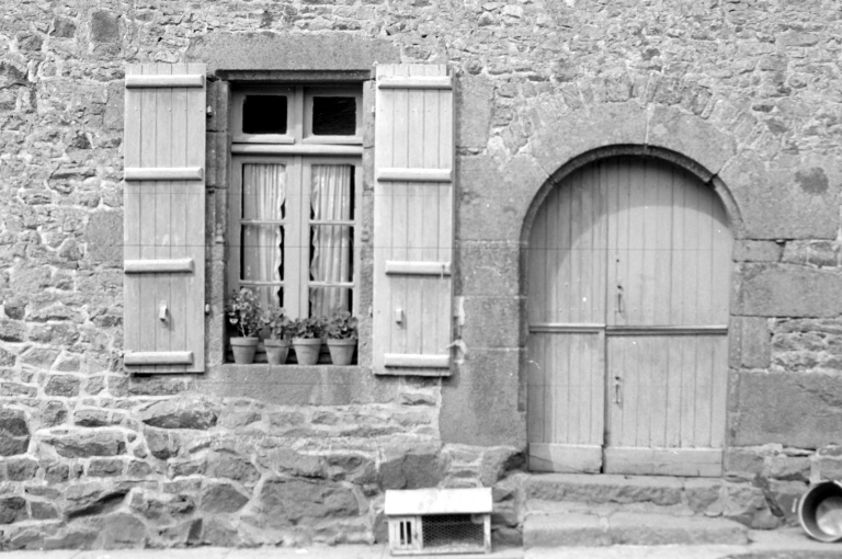 Le Bois Sauvé - Maison, façade antérieure, détail porte.Immatriculation