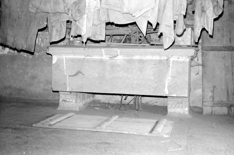 Cheminée n°5, linteau, étage, aile nord, mur pignon.Immatriculation