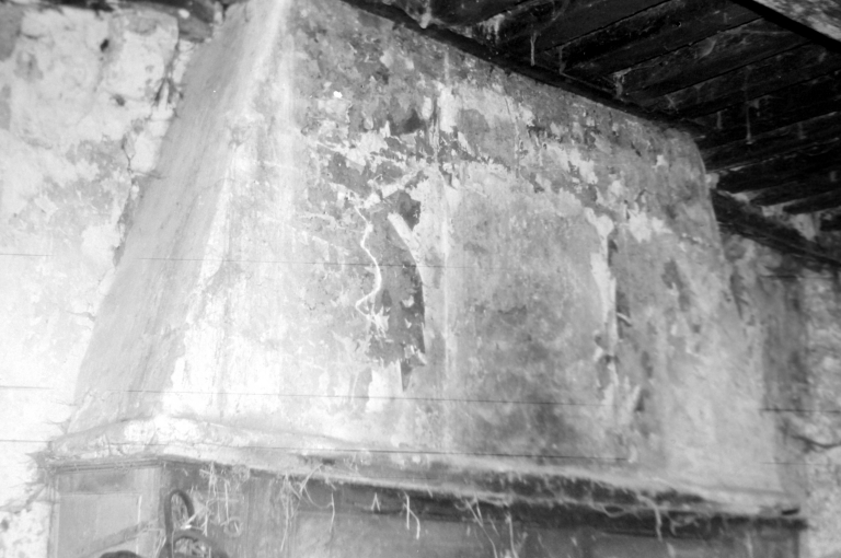 Cheminée du rez-de-chaussée, détail de la hotte.Immatriculation