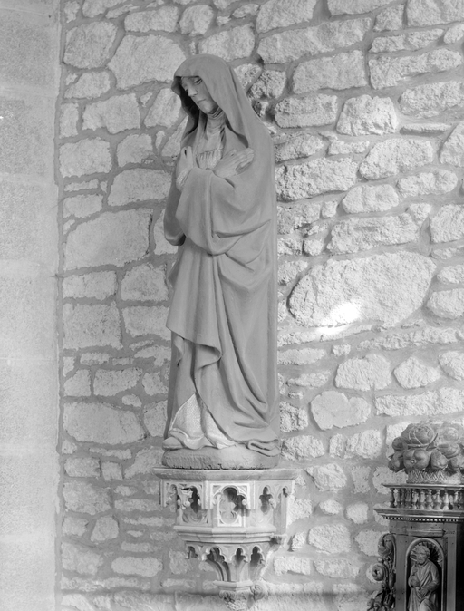 Statue de la Vierge contre le mur est du bras sud du transept, vue de trois-quarts.Immatriculation