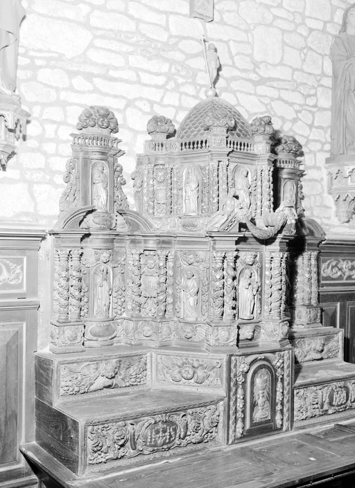 Retable contre le mur est du bras sud du transept, vue latérale prise du nord-est.Immatriculation