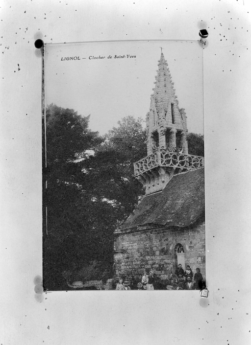 Vue générale du clocher prise du sud-est (Archives départementales du Morbihan, 115-1).Immatriculation