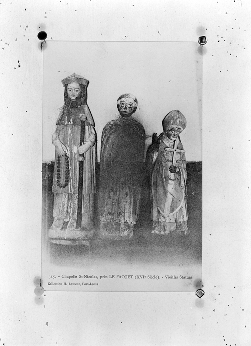 Carte postale ancienne - Vue générale de trois vieilles statues (Archives départementales du Morbihan, 53-99)Immatriculation