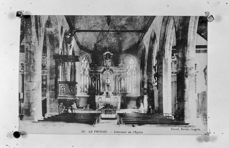 Carte postale ancienne - Vue intérieure avant l'incendie (Archives départementales du Morbihan, 53-87).Immatriculation