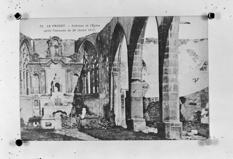 Carte postale ancienne - Vue générale intérieure après l'incendie, choeur et croisillon sud (Archives départementales du Morbihan, 53-83).Immatriculation