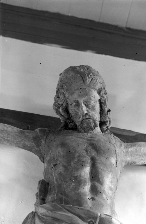 Chapelle : statue du Christ en croix, détail du busteImmatriculation