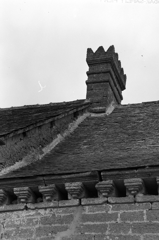 La Blanche-Noé, maison : façade sud, détail de la corniche et de la souche de cheminéeImmatriculation