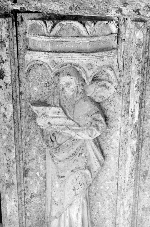 Porche sud, détail des Apôtres ouest : panneau II au sud : saint Luc (?)Immatriculation