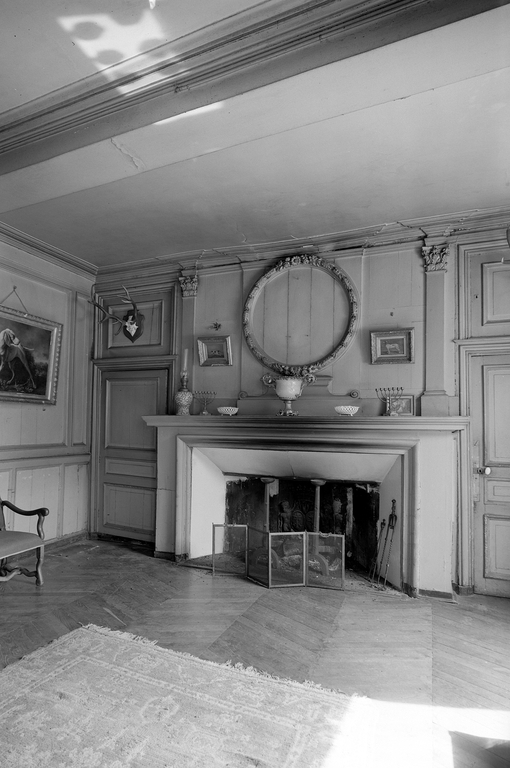 Aile ouest, rez-de-chaussée, grande salle ouest, mur ouest : détail du décorImmatriculation