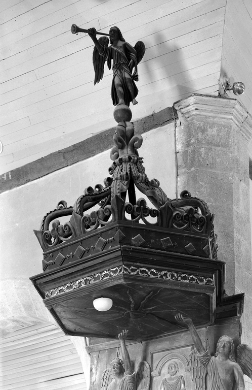 Croisillon du transept, angle nord ouest : chaire, détail de l'abat-voixImmatriculation