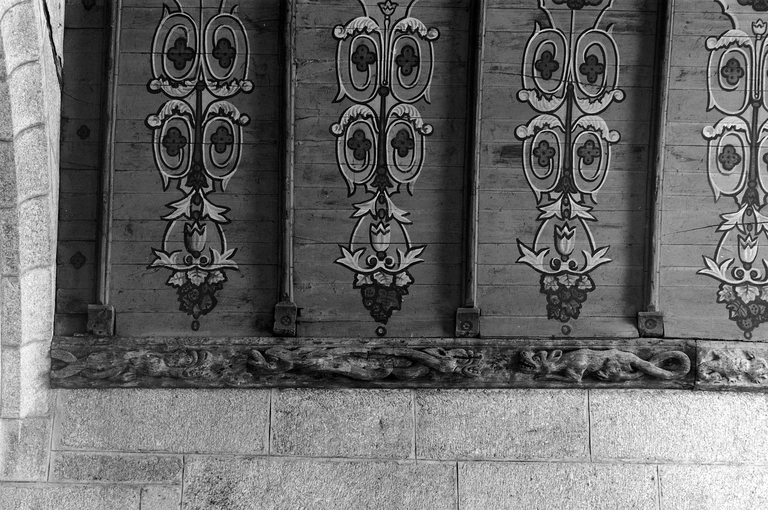 Croisillon oriental sud, mur est : détail du lambris et de la sablièreImmatriculation