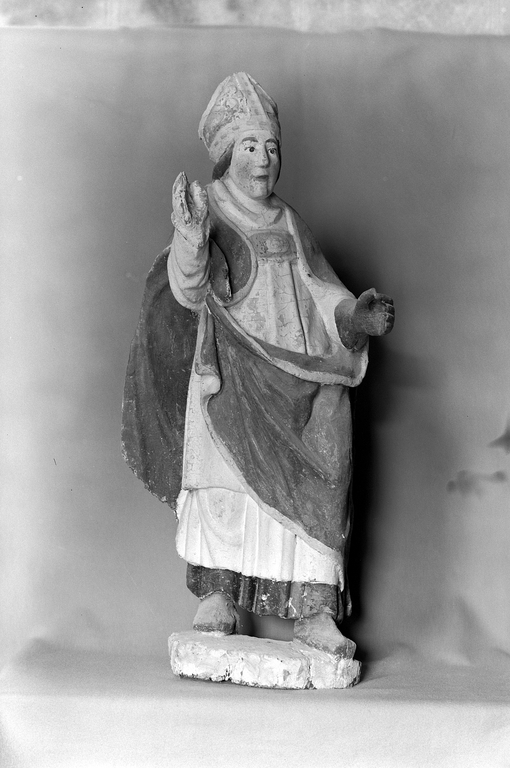 Statue (d'applique, petite nature) : saint évêque (1), chapelle Saint Lubin (Kergrist-Moëlou),