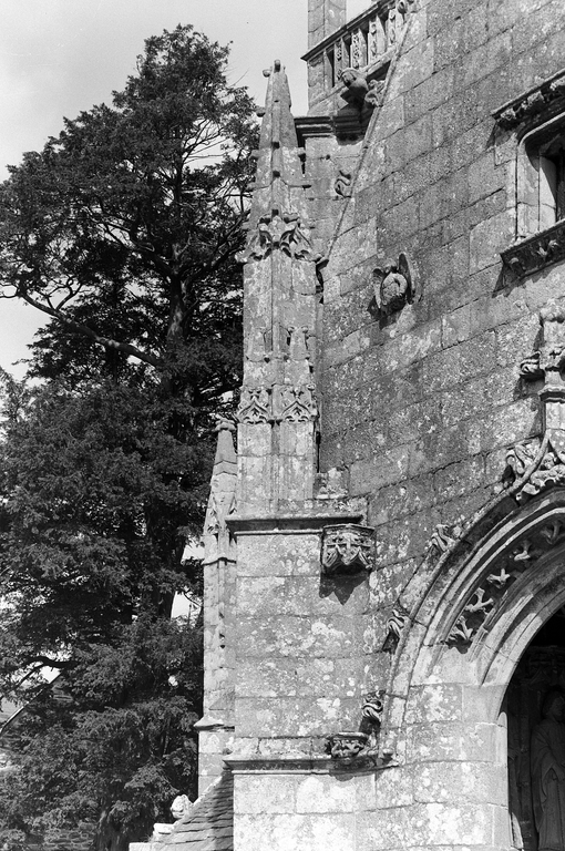 Façade sud, porche : détail du contrefort ouestImmatriculation