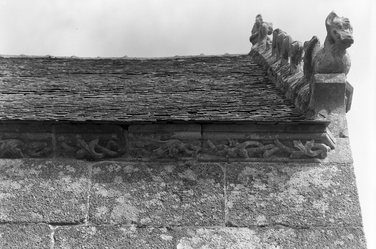 Croisillon occidental sud, face ouest : détail de la partie droite de la cornicheImmatriculation