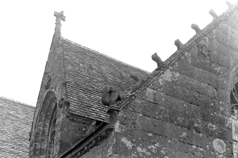 Croisillon oriental nord, face nord : détail de la pierre d'assise sculptée du rampant estImmatriculation