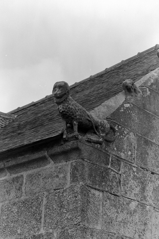 Chevet : détail de la pierre d'assise sculptée du rampant sudImmatriculation