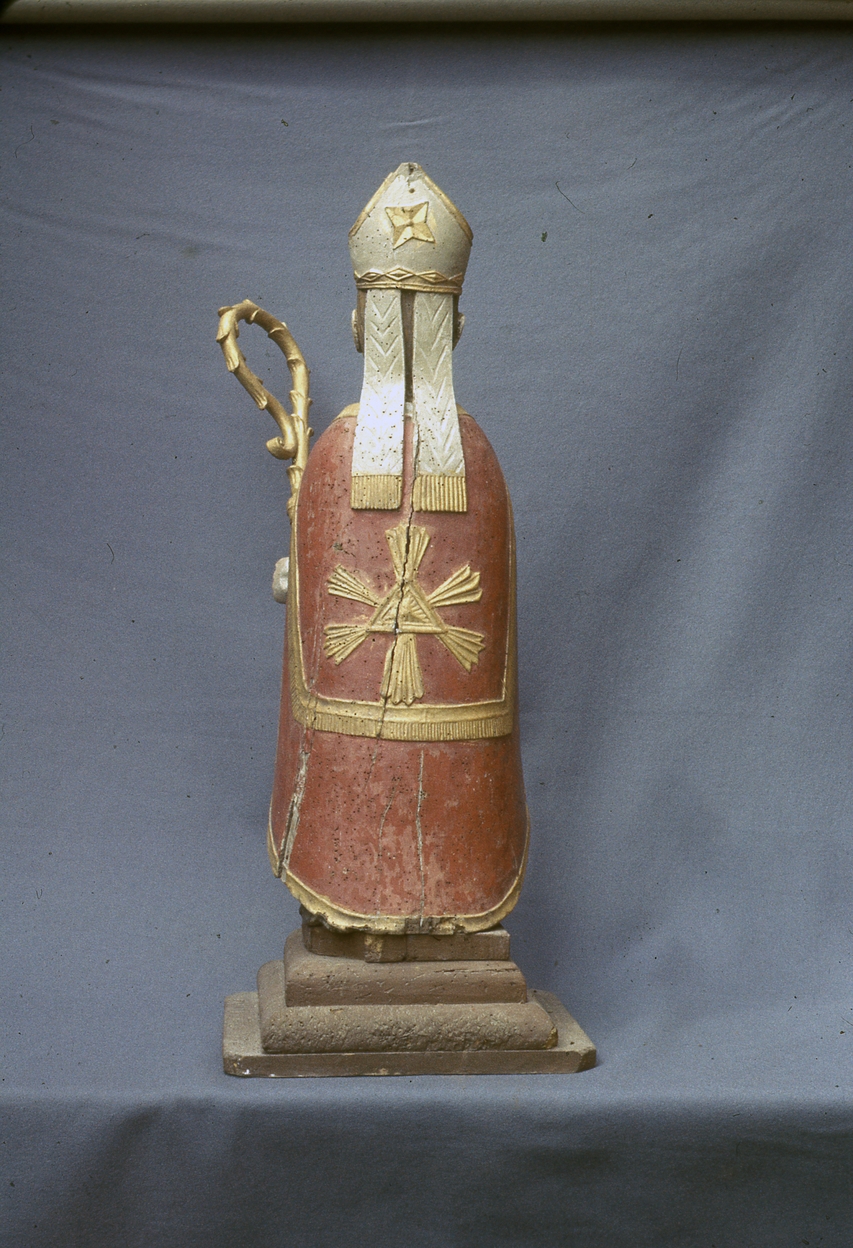 Croisée du transept, pile nord est : statue d'évêque : vue générale de revers.Immatriculation