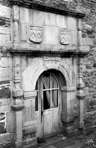 Vue générale du portail de l'ancienne chapelle Saint-Samson portant les armes de la famille Kerjégu (cliché pré-inventaire, 1969)Immatriculation