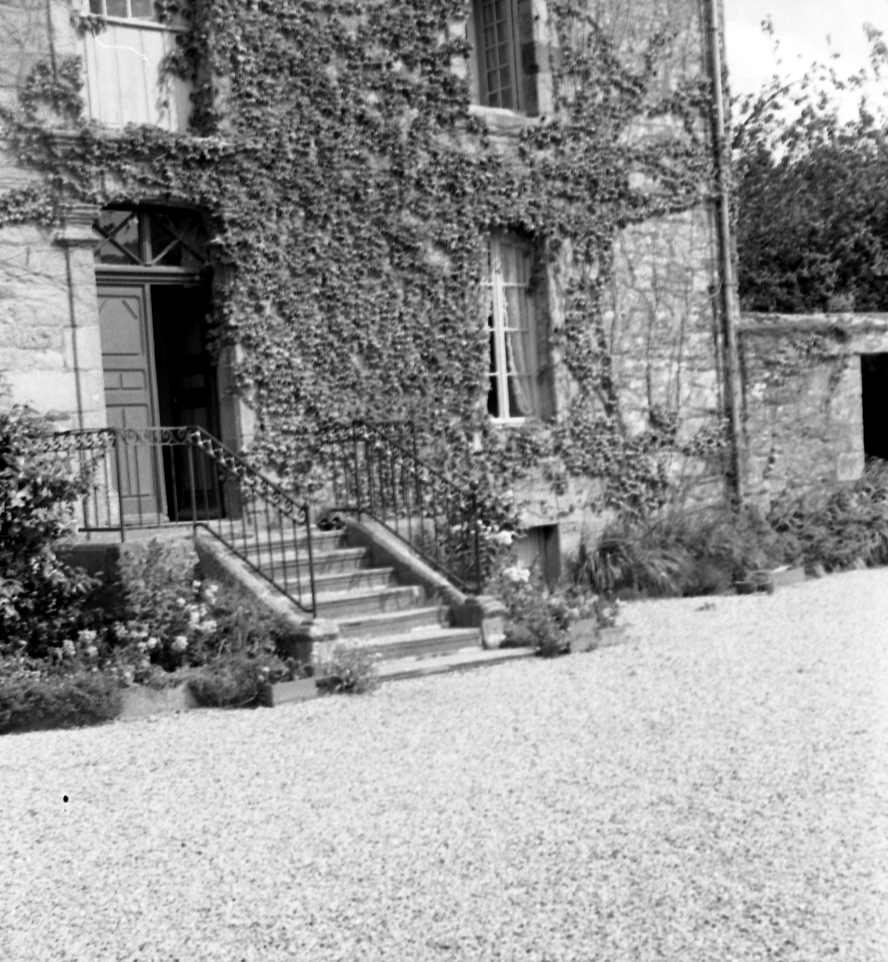 Plufur, le bourg : presbytère, vue de détail du perron, photographie de 1969Immatriculation