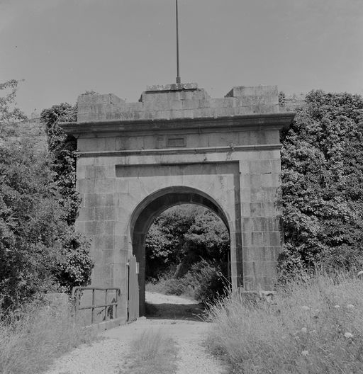 Vue du fort de Lanvéoc en 1969 : porte monumentale datée de 1878Immatriculation