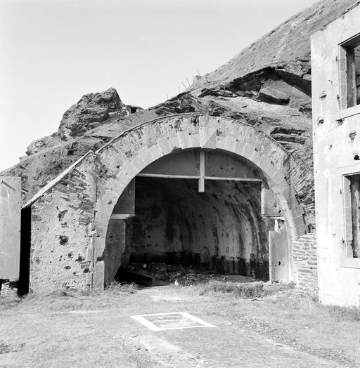 Vue de l'îlot des Capucins en 1969 : usine électrique voûtée (similaire à celles de la caserne Robert et de la batterie de Toulbroc'h)Immatriculation