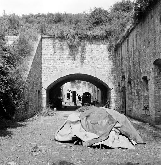 Vue du réduit de Landaoudec en 1969 : cour centrale et passage couvert. A droite : façade des casernes casematéesImmatriculation