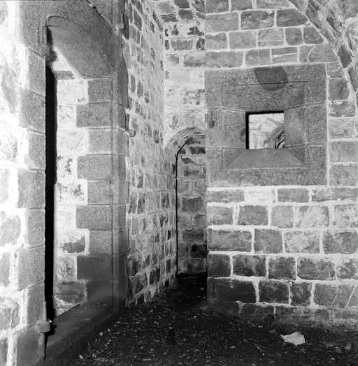 Vue du réduit de Landaoudec en 1969 : vestibule du magasin à poudre. A gauche : entrée de la chambre des poudres, au centre : départ de la galerie enveloppe, à droite : logement de lanterne dit créneau de lanterneImmatriculation