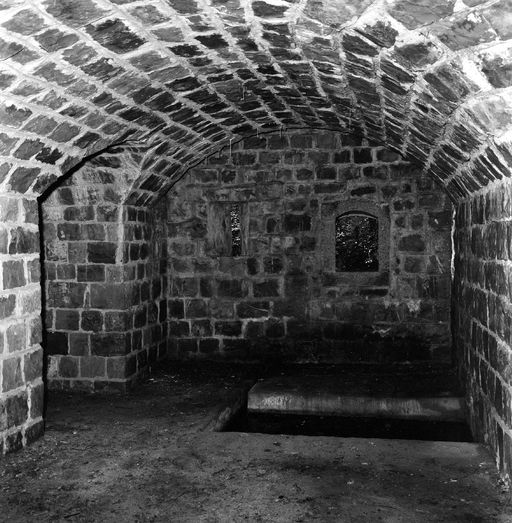 Vue du réduit de Landaoudec en 1969 : caponnière, chambre de tir. A droite : créneau du canon-révolver, à gauche : créneau de fusilladeImmatriculation