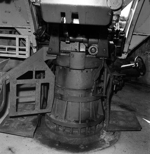 Vue du pivot d'une pièce de 105 mm SK C/32 Flak allemande de la batterie de Tremet en 1969Immatriculation