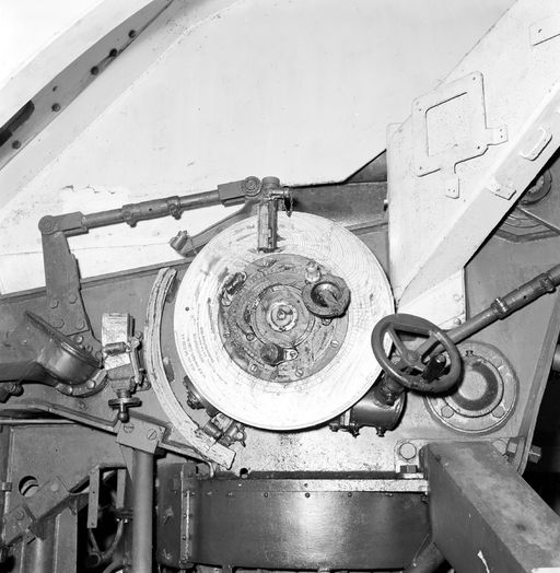 Vue du mécanisme de pointage d'une pièce de 105 mm SK C/32 Flak allemande de la batterie de Tremet en 1969Immatriculation