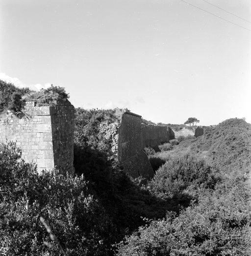 Vue du réduit de Quélern en 1969 : front nord-ouest depuis le bastion 103. En arrière plan : le bastion 104Immatriculation