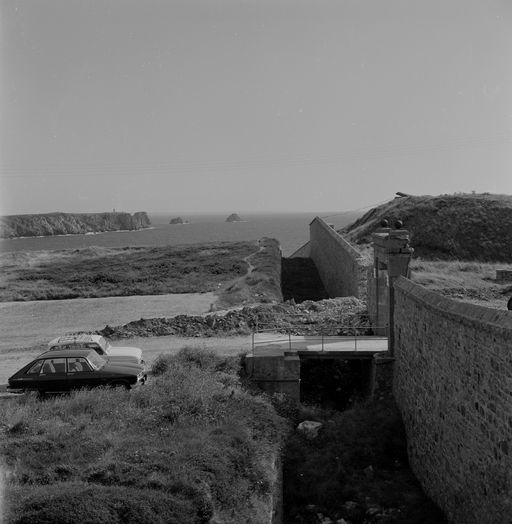 Vue de la batterie du Toulinguet en 1969 : front de gorge et entrée monumentale depuis la tour-modèle n° 3Immatriculation