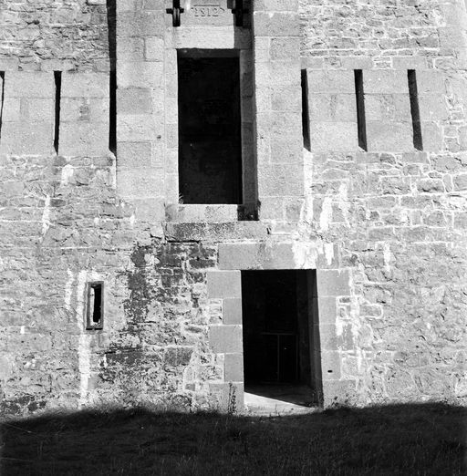 Camaret-sur-Mer, pointe du Toulinguet : vue de la tour-modèle n° 3 en 1969, entrée monumentale datée 1812 encadrée de pilastres surmontée d'une bretèche. Entrée secondaire aménagé dans la 2e moitié du 19e siècleImmatriculation