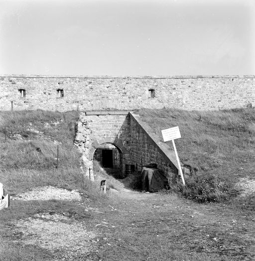Vue de la batterie du Toulinguet en 1969 : rempart du front de gorge, poterne menant au fosséImmatriculation