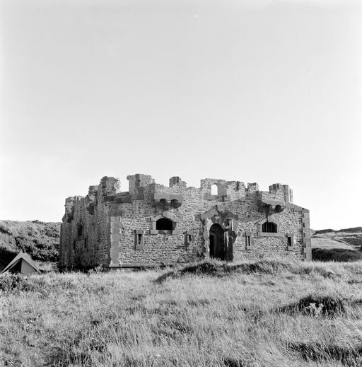 Vue générale du corps de garde crénélé de l'île de l'Aber du côté de l'entrée en 1969Immatriculation