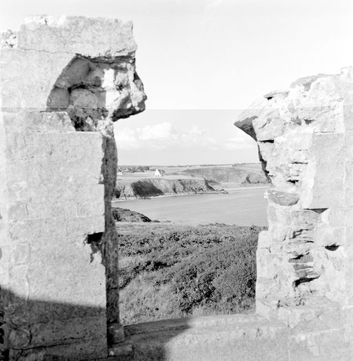 Vue du corps de garde crénélé de l'île de l'Aber en 1969 : une des quatre embrasures de la terrasseImmatriculation